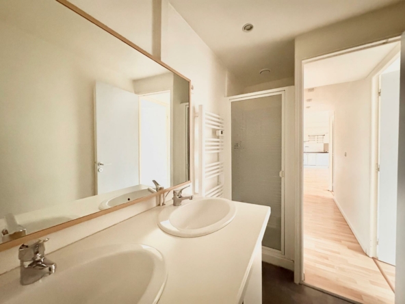 Situé au 1er étage d’une petite copropriété, ce logement se compose d’une cuisine ouverte sur un grand séjour lumineux, d’un couloir avec placards, de deux chambres, d’une salle d’eau ainsi que d’un WC indépendant.