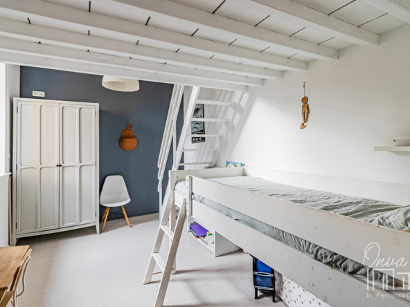 – d’une seconde chambre de 15m² incluant une mezzanine de 6m² idéale pour un couchage supplémentaire ou une salle de jeu.