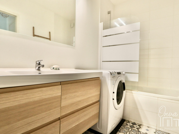 – d’une salle de bains avec emplacement lave-linge/sèche linge. WC séparés.