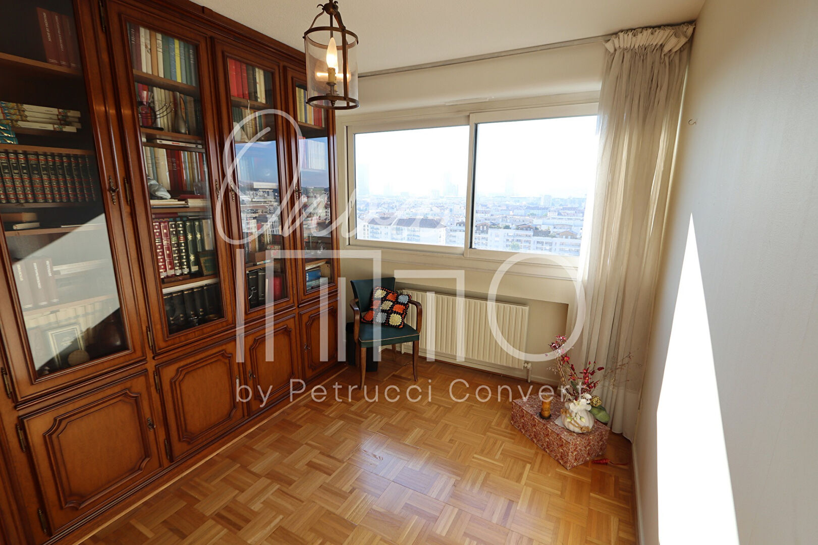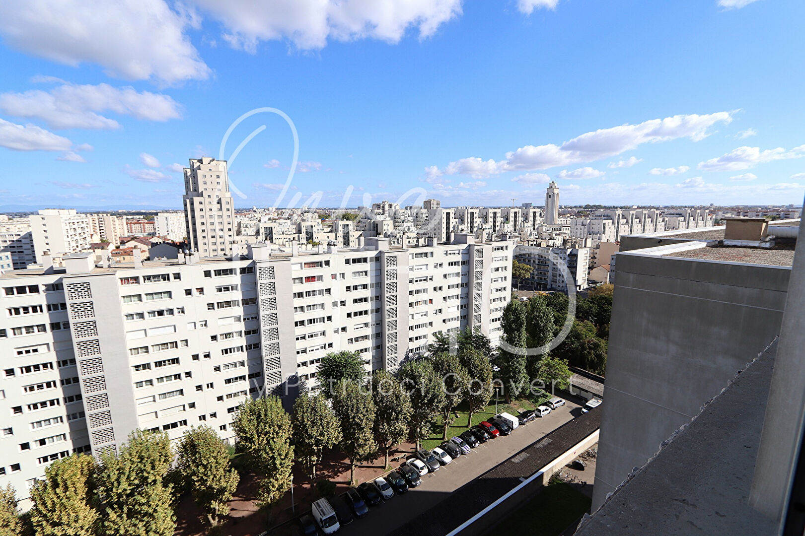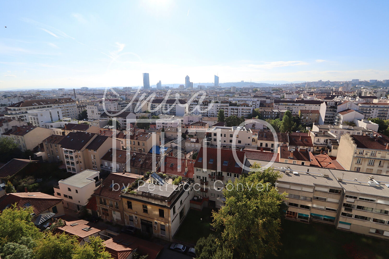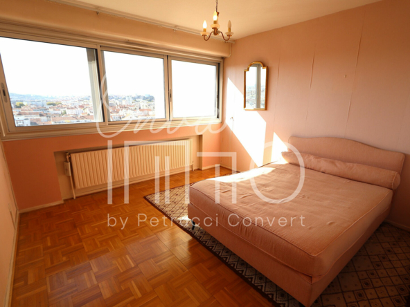 Lumineux appartement traversant E / O en étage élevé avec ascenseur, doté d’un linéaire de fenêtres inondant l’espace de lumière et offrant une très belle vue sur les Monts du Lyonnais et Fourvière, dans une copropriété arborée et sécurisée.