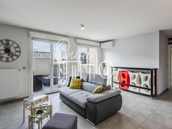 – Belle pièce de vie de 33.5m², lumineuse et spacieuse avec parquet chêne et climatisation.
