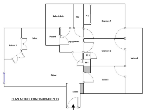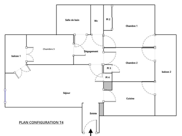 Ce T4 au plan d’origine est aujourd’hui configuré en T3 avec un séjour double de 46m² , mais pourra facilement retrouver son agencement initial avec une pièce de vie de 35m² et un coin nuit séparé avec 3 chambres de 10 à 12m² (voir plans disponible dans l’annonce).