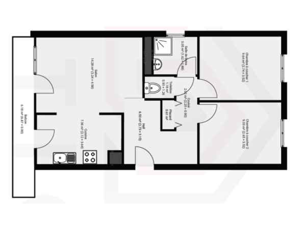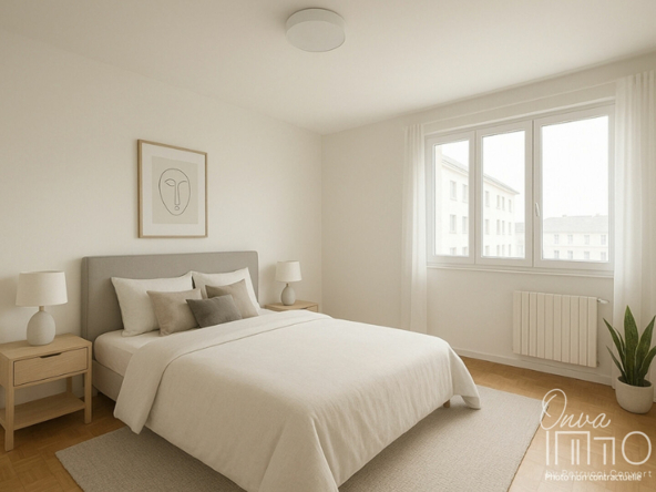 Lumineux T3 de 53.74m² avec balcon de 6m², cave et place de stationnement, idéalement situé à 500m du métro Cusset et 700m de la Place Jules Grandclément.