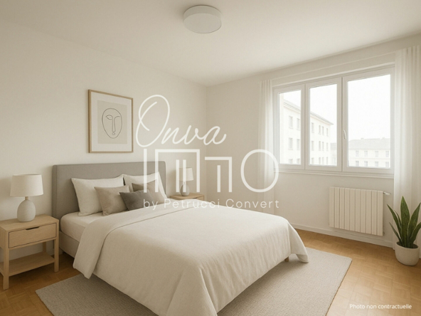 Lumineux T3 de 53.74m² avec balcon de 6m², cave et place de stationnement, idéalement situé à 500m du métro Cusset et 700m de la Place Jules Grandclément.